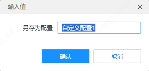 修改配置后可以操作另存为配置,弹出自定义配置名称的输入弹窗,完成输入后单击确认即可完成配置的新建保存,方便后续快速切换和使用。