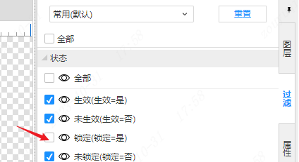 图元生效与否和锁定与否的相关属性设置在每个图元的右侧属性面板中
