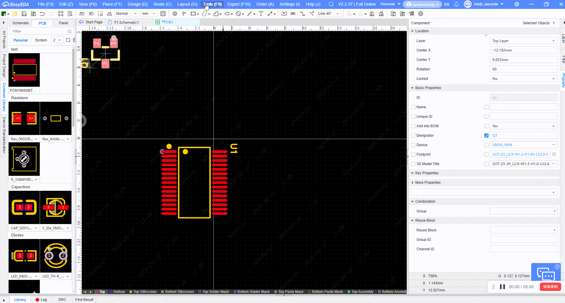 Step 1: Select the device and click the right mouse button to enter the Edit Footprint interface.