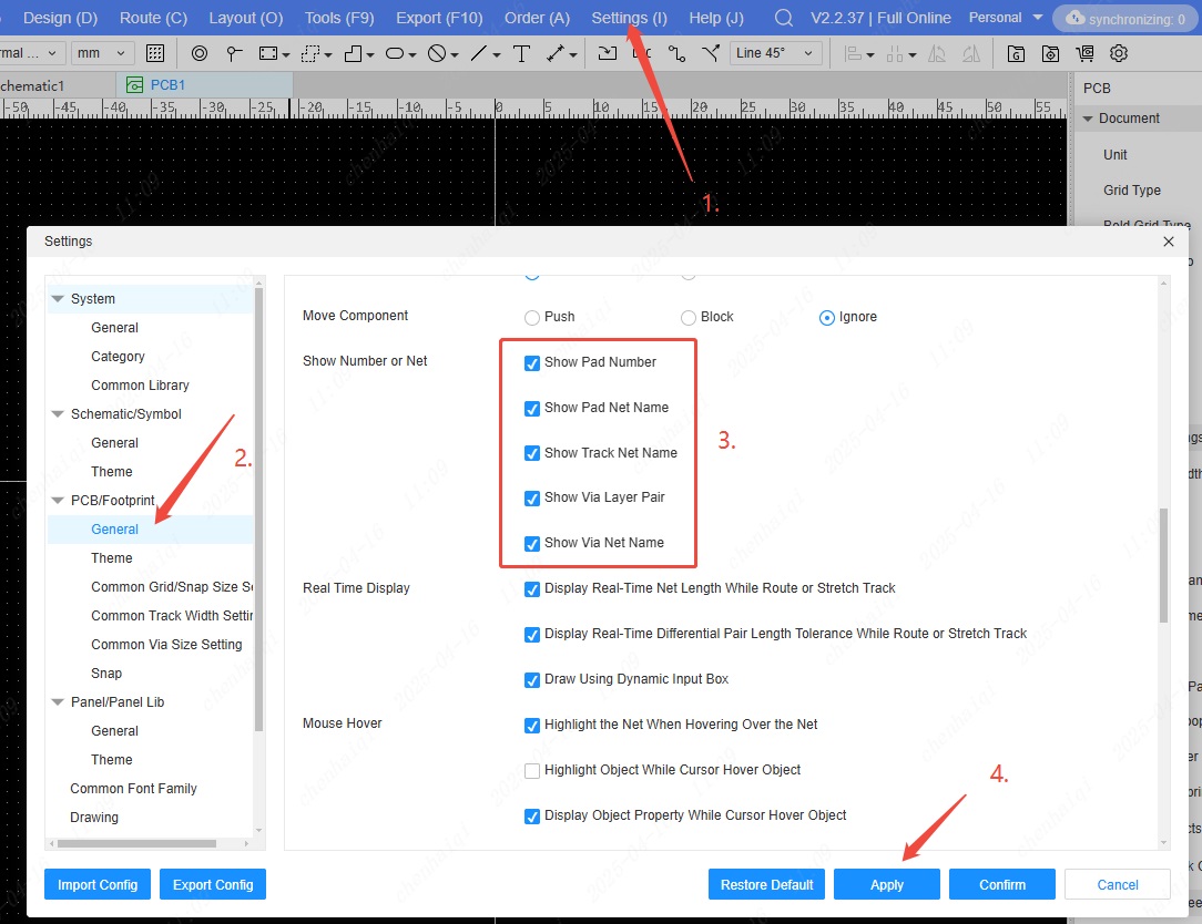 When you open the pcb after the discovery of the previous drawing of the pcb are all gone can be dealt with in this way: first go to the 3d preview to check whether the board exists, if so, modify the settings inside the engine for 2d mode. This is because the new version of the optimisation, some computers do not support the gpu engine will make the pcb black, just need to change the engine can be, not a big problem.