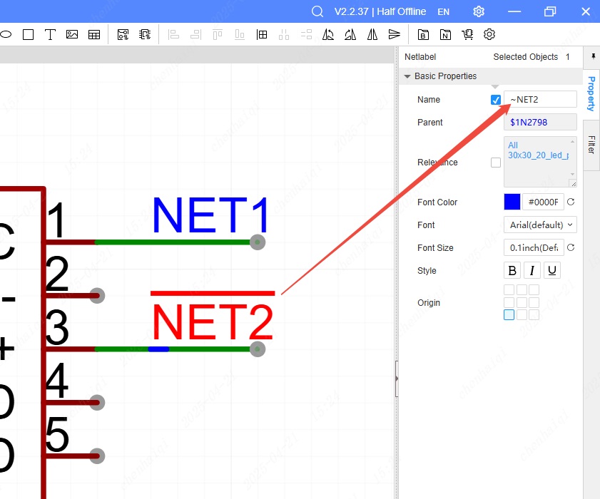 Generally, a network name needs to be connected to two or more pins to form a connection. For example, as shown in the figure below.