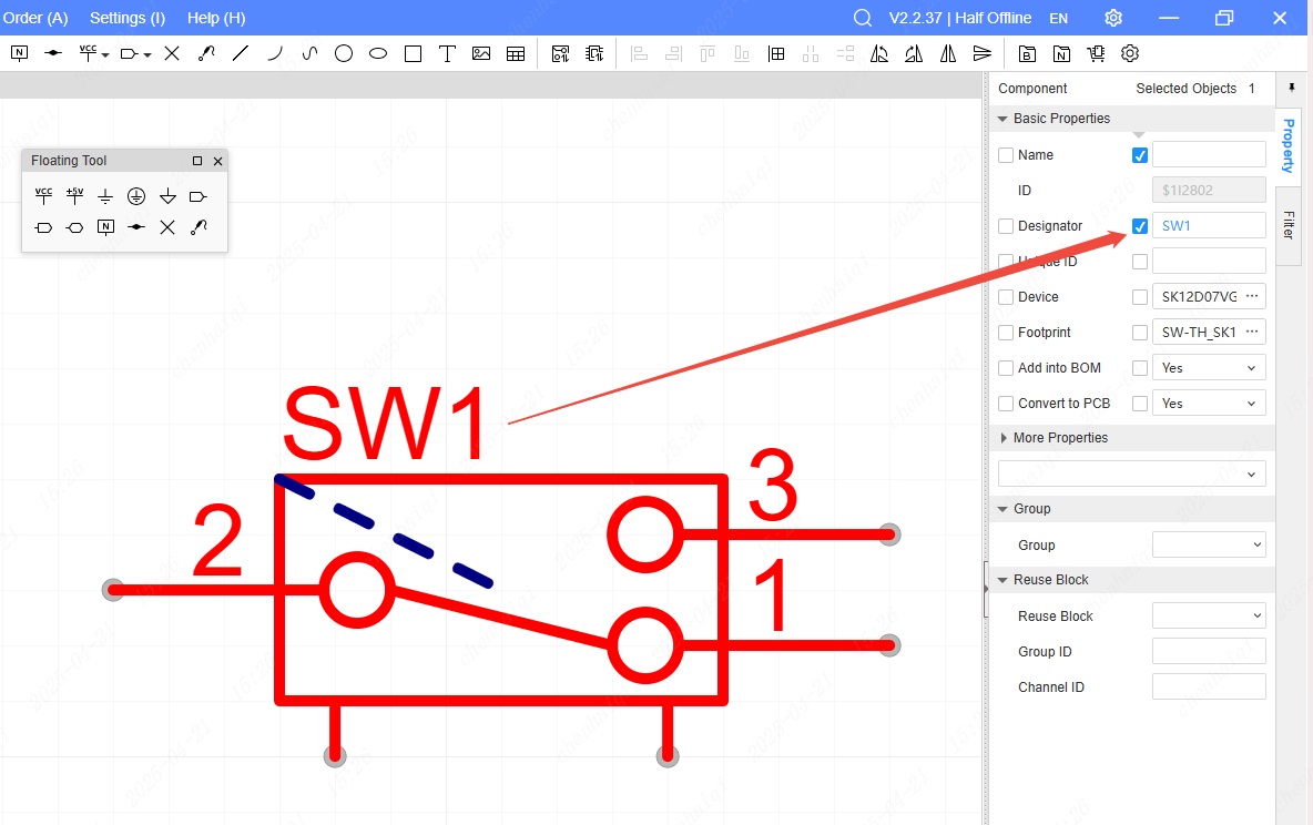 Step 3: When you want to switch the drawing panel, you can change it in the property bar on the right side of the schematic interface.