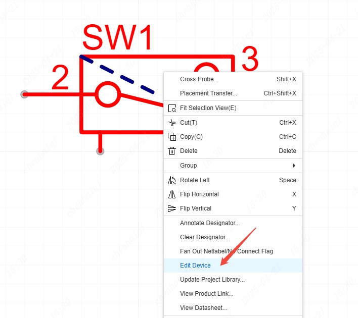 Step 1: Select the symbol you want to edit in the library and click ‘Edit device’ .