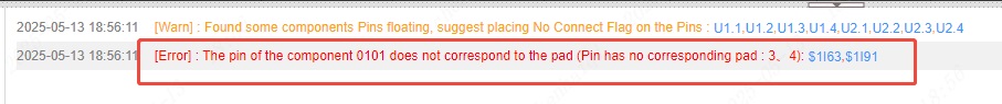 When we encounter this error, it means that the number of pads on the device's symbol pins and footprints do not match and they need to be changed to the same number.
