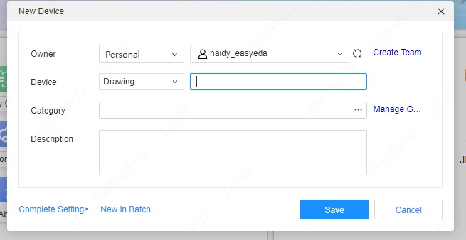 Step 2: Fill in the drawing information and properties according to your needs. Then click Save to complete the creation, and the drawing will be saved in your personal library.