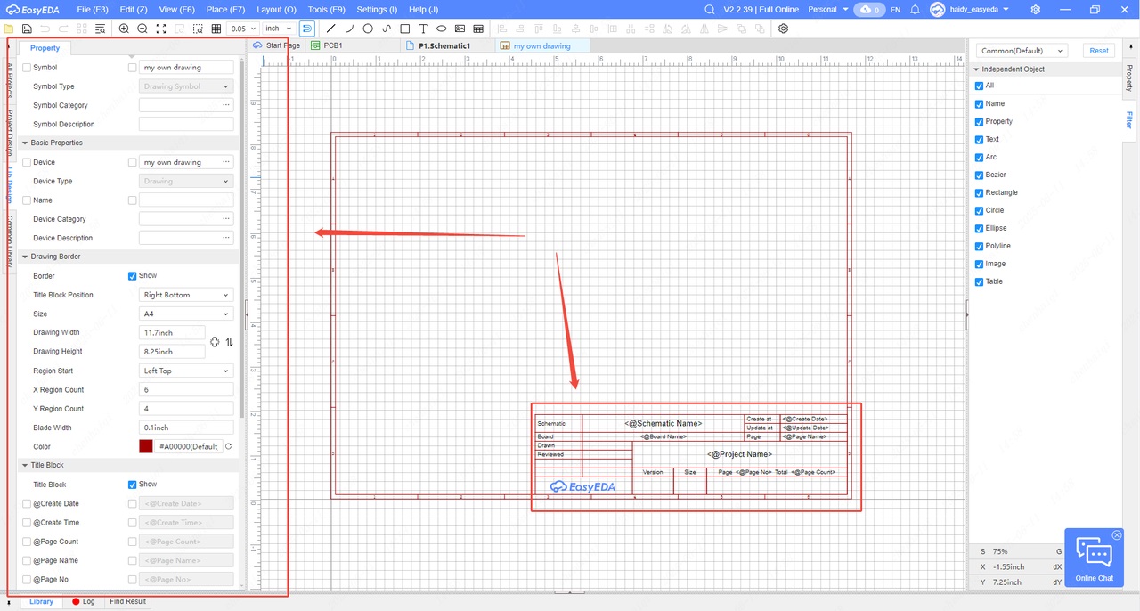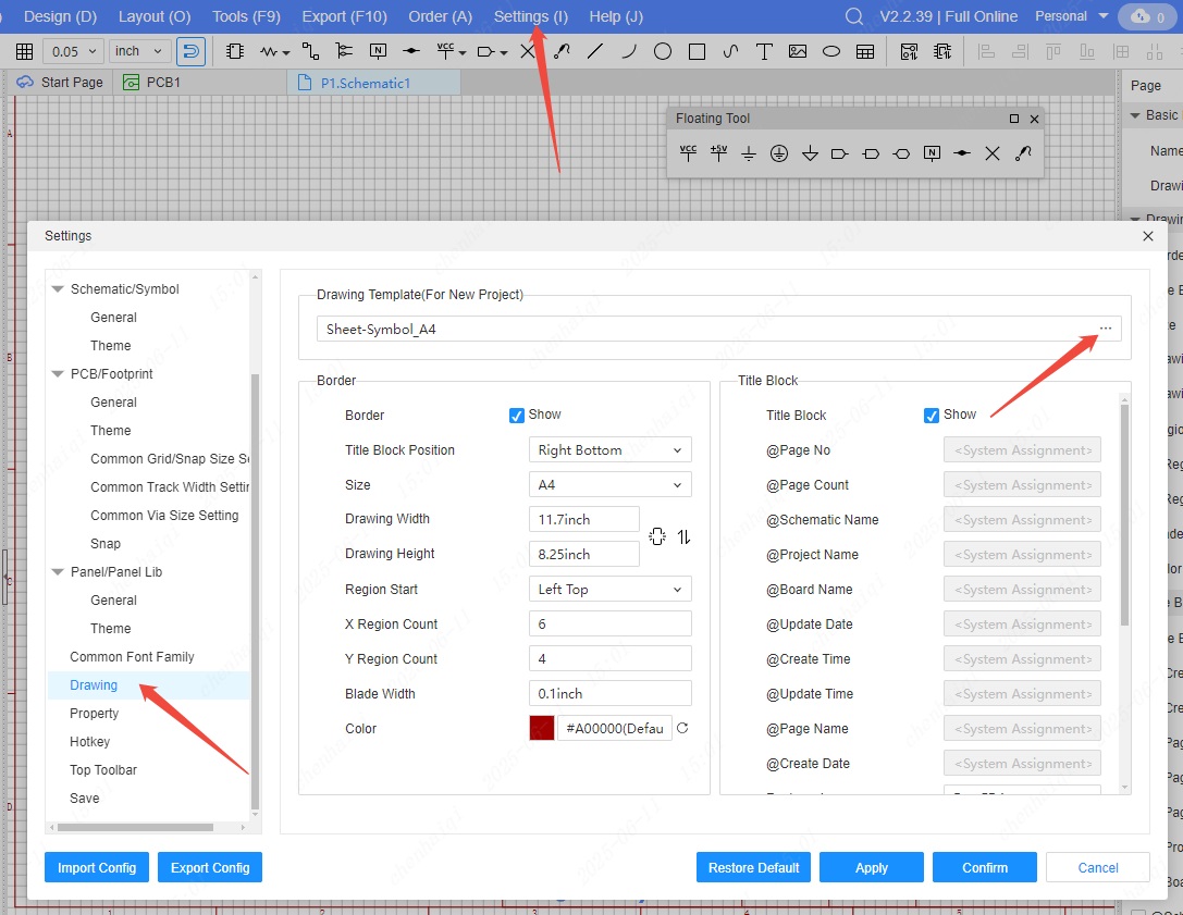 Project Drawing Setting:https://prodocs.easyeda.com/en/schematic/design-project-drawing-setting/index.html