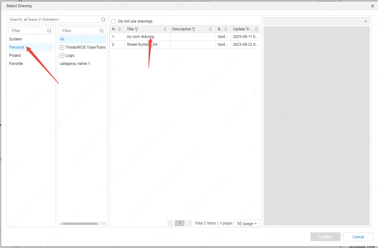 Then in the same place, you can find the schematic drawing template you created in my template library.